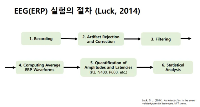 뇌파 중 학습과 연결지어 볼 수 있는 것들에는 어떤 것들이 있을까요? 이 또한 EEG 분석 방법에 따라 나누어 살펴볼 수 있는데요. 먼저 ERP(사건관련전위) 방식으로 수행된 연구 결과들에 따르면, 주의집중과 관련하여 나타나는 뇌파 파형은 P3a, P3b, P300, 언어적 불일치와 관련해서는 P600(문법), N400(의미) 등이 있습니다. 이밖에도 오류나 피드백, 정서와 관련해서도 특정한 파형이 발견된다고 하네요. 시간-주파수 분석 연구에 따르면, 주파수가 30-60Hz인 Gamma wave가 학습·기억과의 관련성이 높다고 합니다.